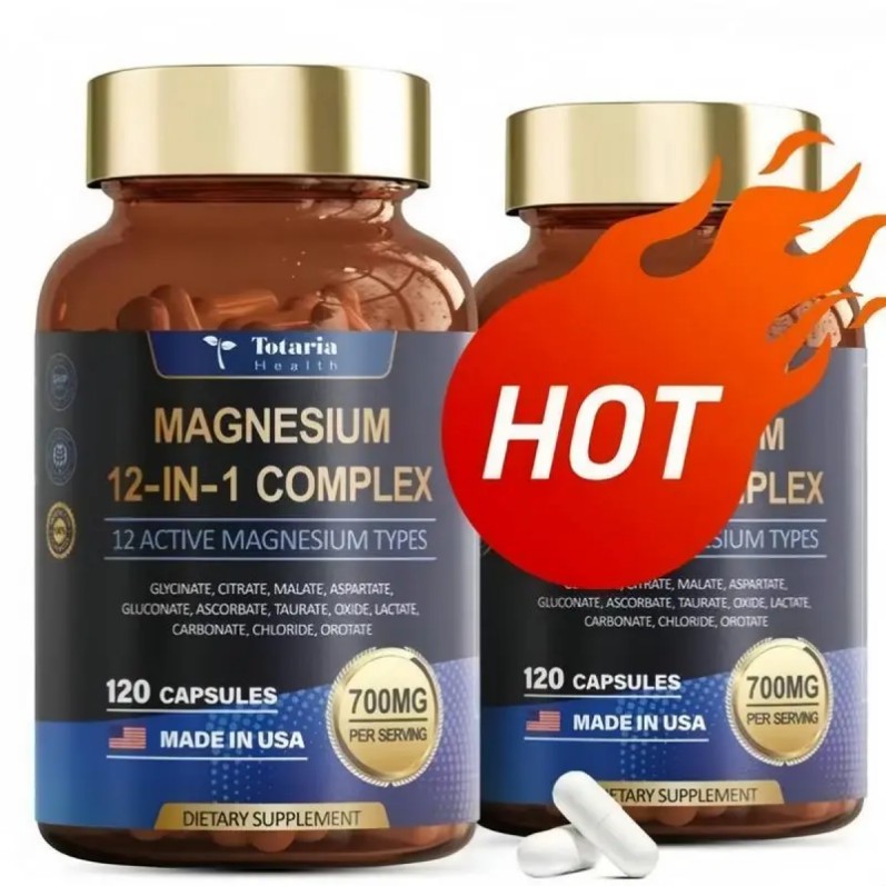 12-in-1Magnesium Complex700mg-Supplement with GlycinateCitrate MalateOxide Taurate Aspartate Orotate, VeganCapsulesfor Muscle,Heart,and Relaxation Support Healthcare, Dietary, Fitness, Edible, Vitamin, Bathroom, Healthy, Calcium