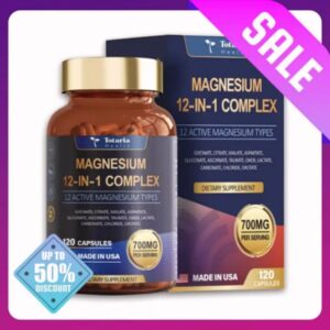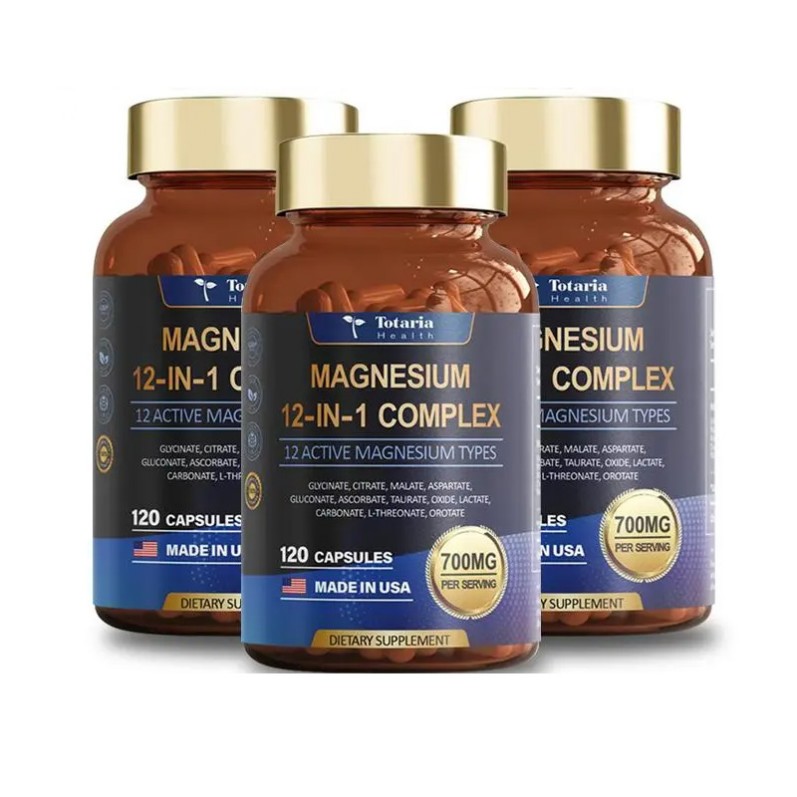 Totaria Health 700mg 12-in-1 Magnesium Complex Glycinate Citrate Malate Oxide Taurate Aspartate Orotate Vegan Capsules for Muscle Support Heart Health & Relaxation Premium Supplement Non-GMO Gluten-Free