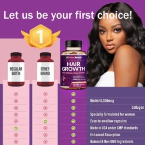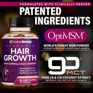 Advanced Hair Growth Vitamins – Biotin 10,000mcg, Collagen & OptiMSM for Thicker Hair, Hair Loss Prevention, Skin & Nails, 60 Capsules