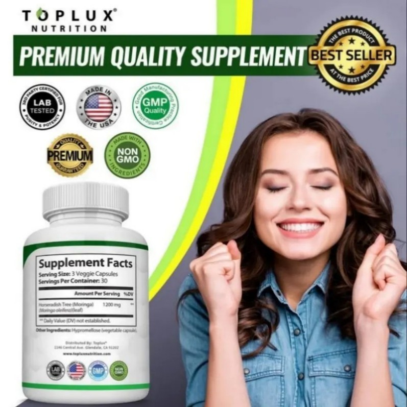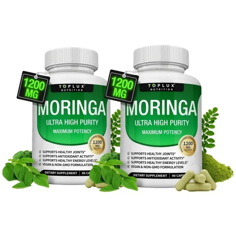 Green Superfood PowrEach serving of Moringa Capsules 1000mg+200 1200mg delivers 1,200mg of pure Moringa oleifera leaf. This isone of nature’s most powerful plant-based superfoods. Moringa is rich in over 92 essential vitamins, nutrients, minerals, amino acids, and 46 types of antioxidants. It supports energy, vitality, and overall wellness. Moringa helps naturally energize and fuel your body with essential nutrients.ًں›،ï¸ڈ Immune Function & Skin HealthMoringa supports immune system function and healthy skin. Its antioxidant nutrients promote year-round immune support and a revitalized, energized feeling. Take daily to enhance your immune function and skin health. Moringa is known for its natural ability to support these aspects.ًں’ٹ Pure Moringa PowderOur formula contains only Moringa oleifera leaf, offering 1,200mg with no fillers or binders. It’s non-GMO, gluten-free, and suitable for vegan and vegetarian lifestyles. Made with pure moringa, it delivers all the benefits of Moringa oil in easy-to-swallow capsules. Enjoy plant-poered nourishment.