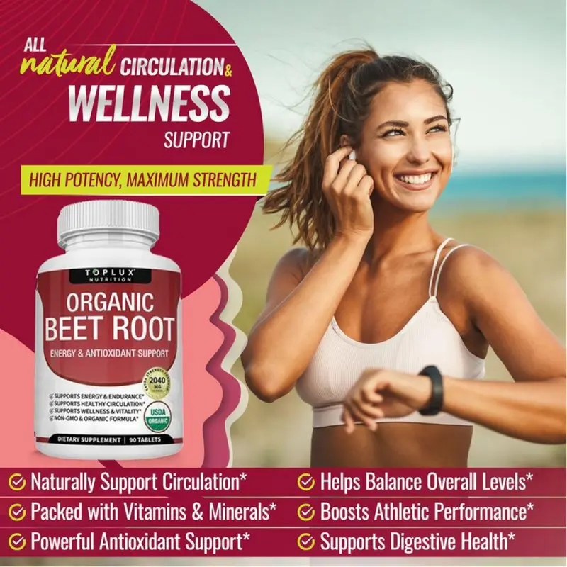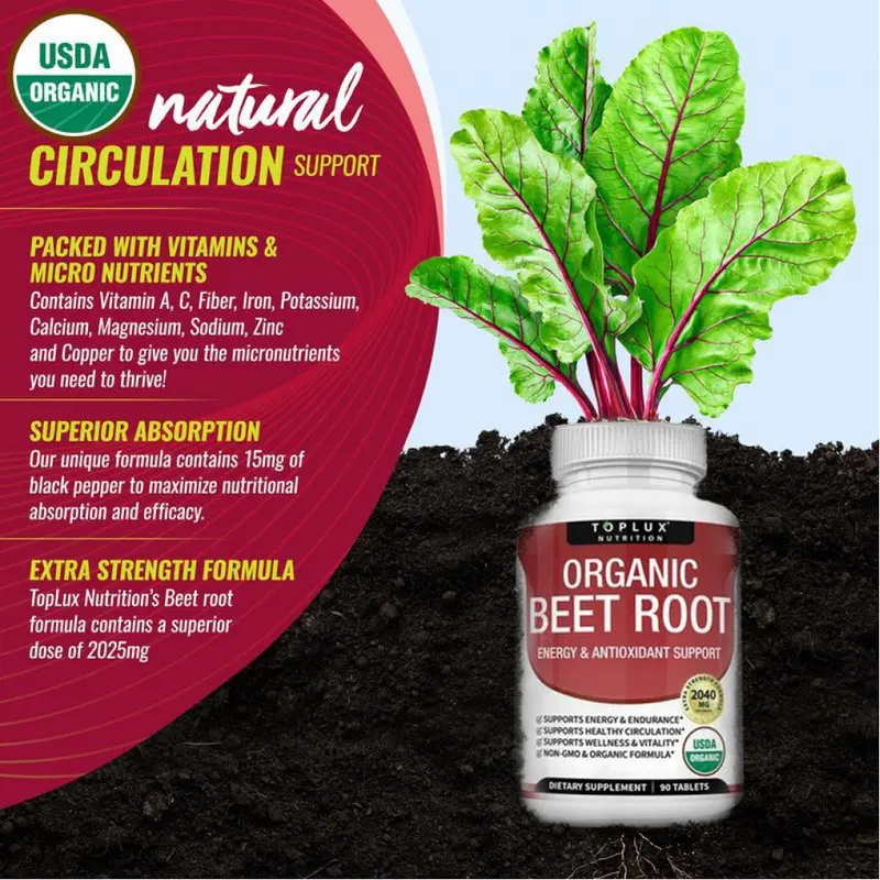 Product Details: Each pack contains 90 tablets, with each tablet delivering 2040mg of organic beet root powder. Perfect for those looking for a natural supplement. 🍎